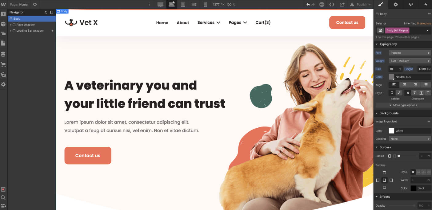As you could see above, Vet X was built on Webflow using the best practices to make it very easy for you to edit the template and customize it to your needs.